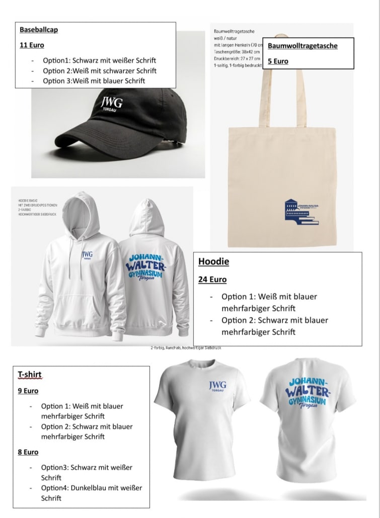 Endlich ist er da, unser neuer Schulmerch! Schaut ihn euch gerne an und bestellt das, was euch gefällt. Viel Freude dabei.