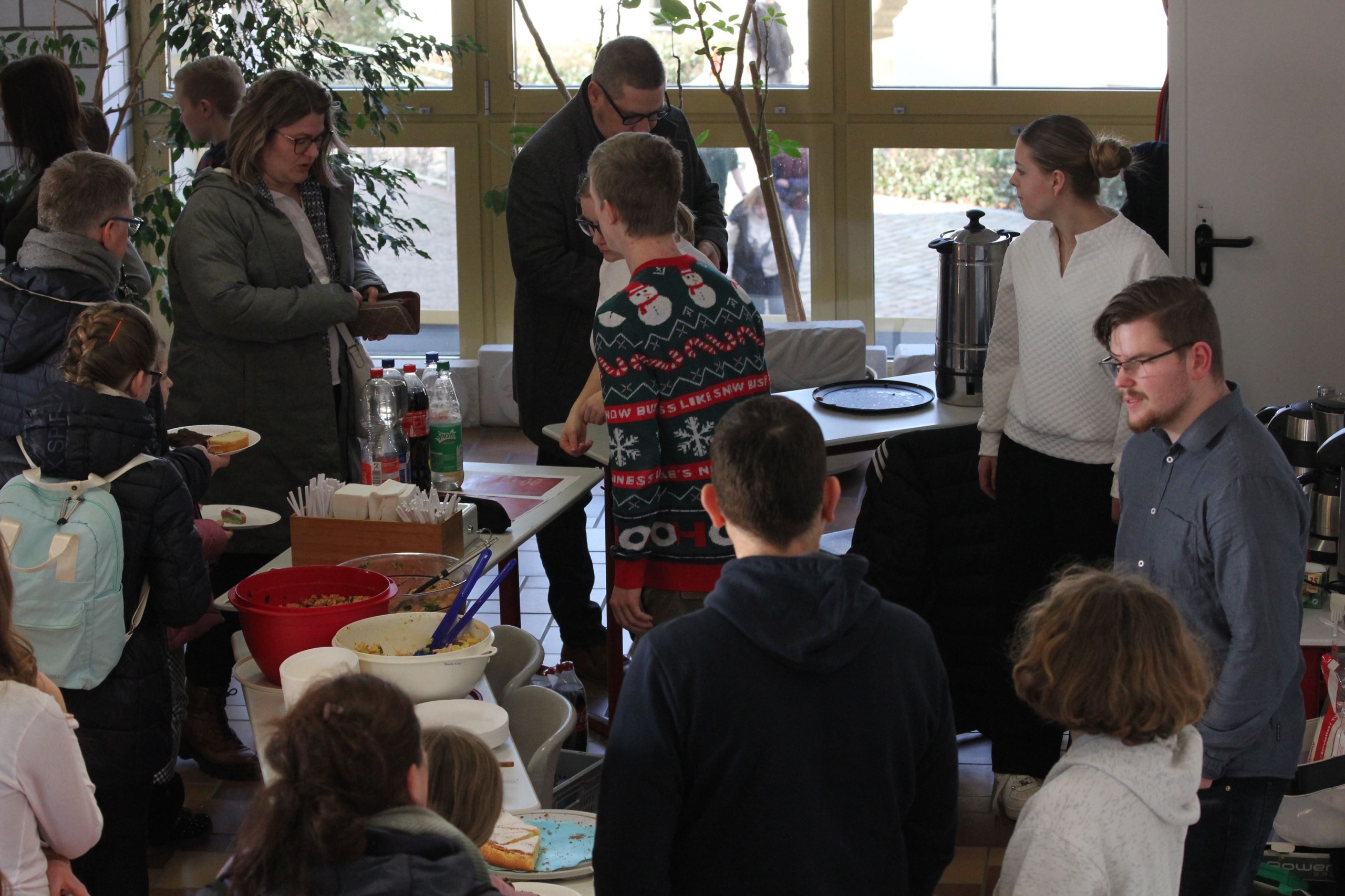 Für das leibliche Wohl hat die Jahrgangsstufe 12 gesorgt. Mit Kuchen, Salaten und Gegrilltem konnten sich die Gäste stärken und weiter die Schule erkunden.